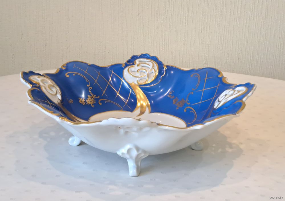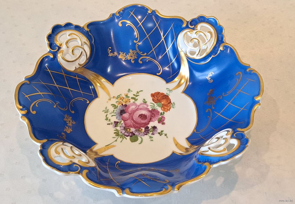 Фарфоровая ваза или блюдо ручная роспись Weimar Porzellan DDR ГДР ХХ век, диаметр 32 см., высота 9 см.