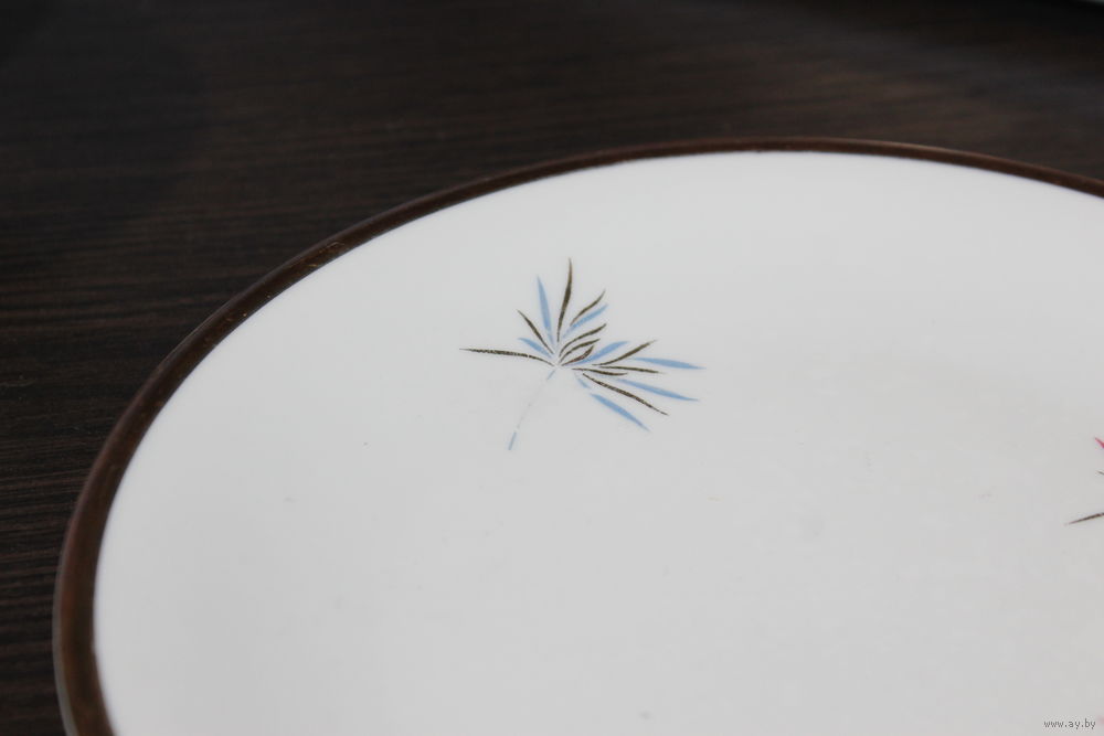 Высота чашки 5,5 см., диаметр 10 см., диаметр средней тарелочки 14,2 см., диаметр большой тарелочки 19,2 см.