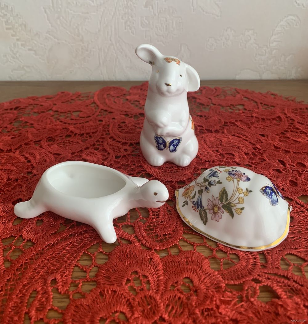 | Фигурки костяной фарфор; 1) черепашка 6/11см( шкатулка); 2) кошка шкатулка 9см; пингвин10см;уточка, заяц, лисичка, медвежонок, собачка, сова, кот,пингвин( все в наличии) цена за каждого 110руб. | |