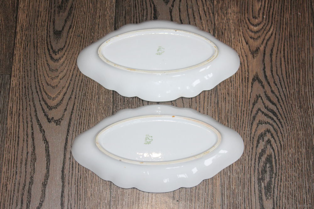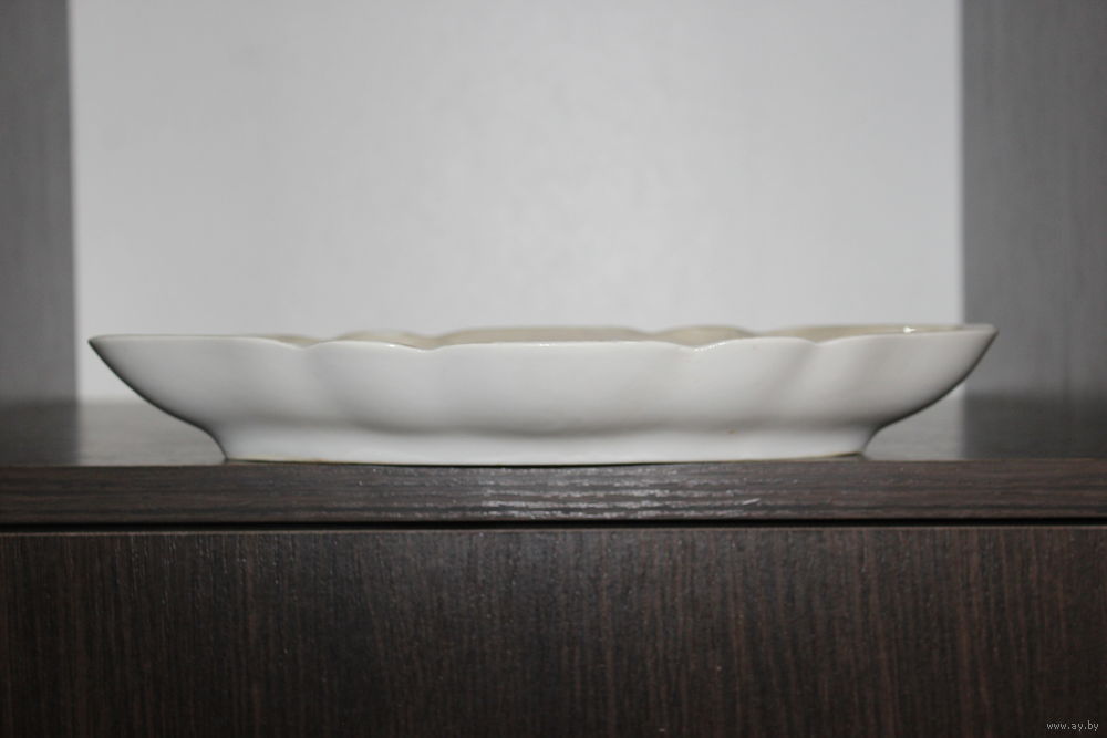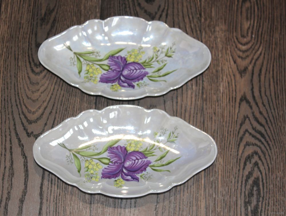 Тарелки имеют волнистый край и глянцевое перламутровое покрытие.