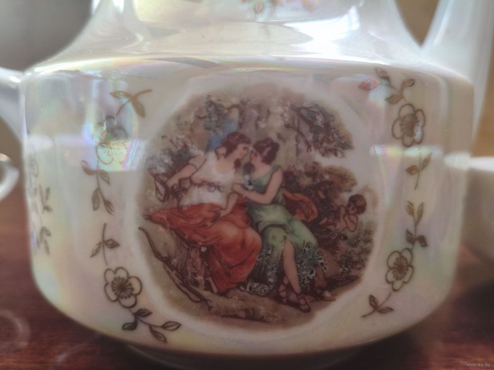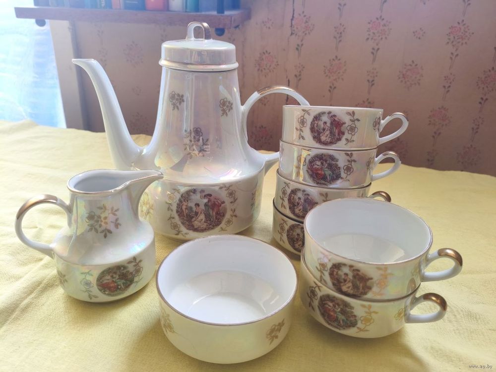 Чайник, 6 чашек, пиала, сливочник. Сюжет - Мадонна