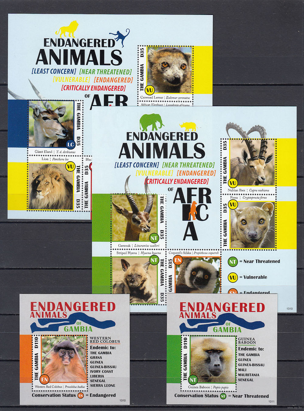 Фауна Африки. Гамбия. 2012. 2 малых листа и 2 блока. Michel N 6720-6729, бл853-854 (42,0 е).