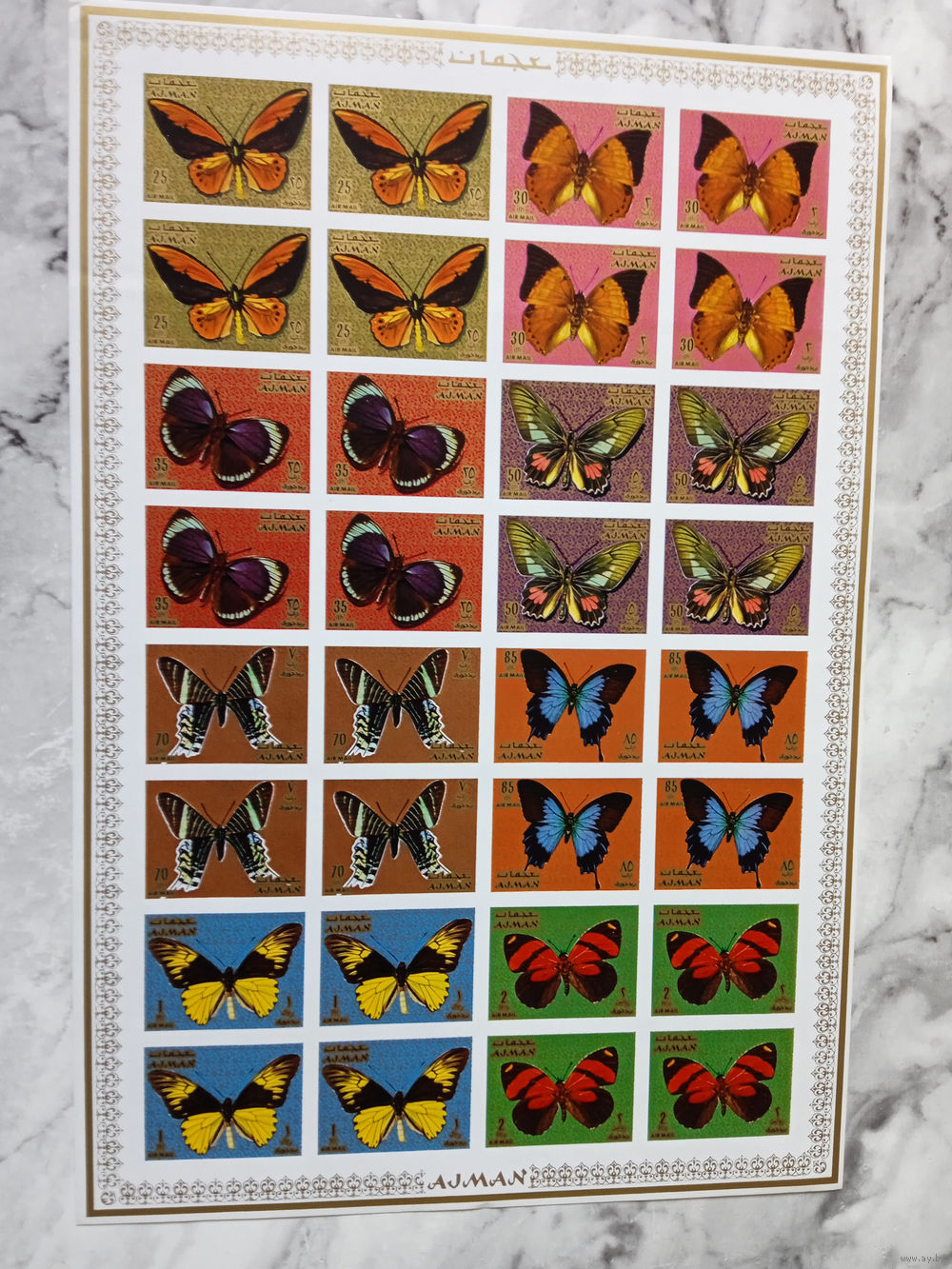 Фауна. Бабочки. Аджман (ОАЭ). 1971. 1 малый лист б/з. Michel N 1124-1143 (30,0 е)