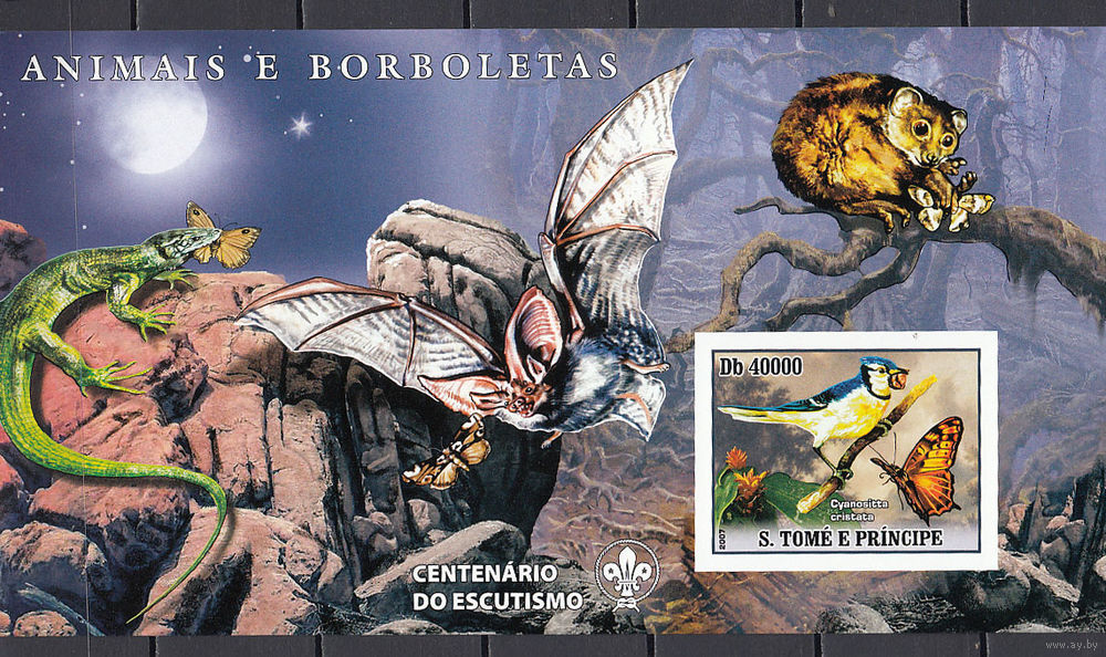 Фауна. Бабочки и птицы. Сан-Томе и Принсипе. 2007. 1 блок б/з. Michel N бл593 (11.0 е)