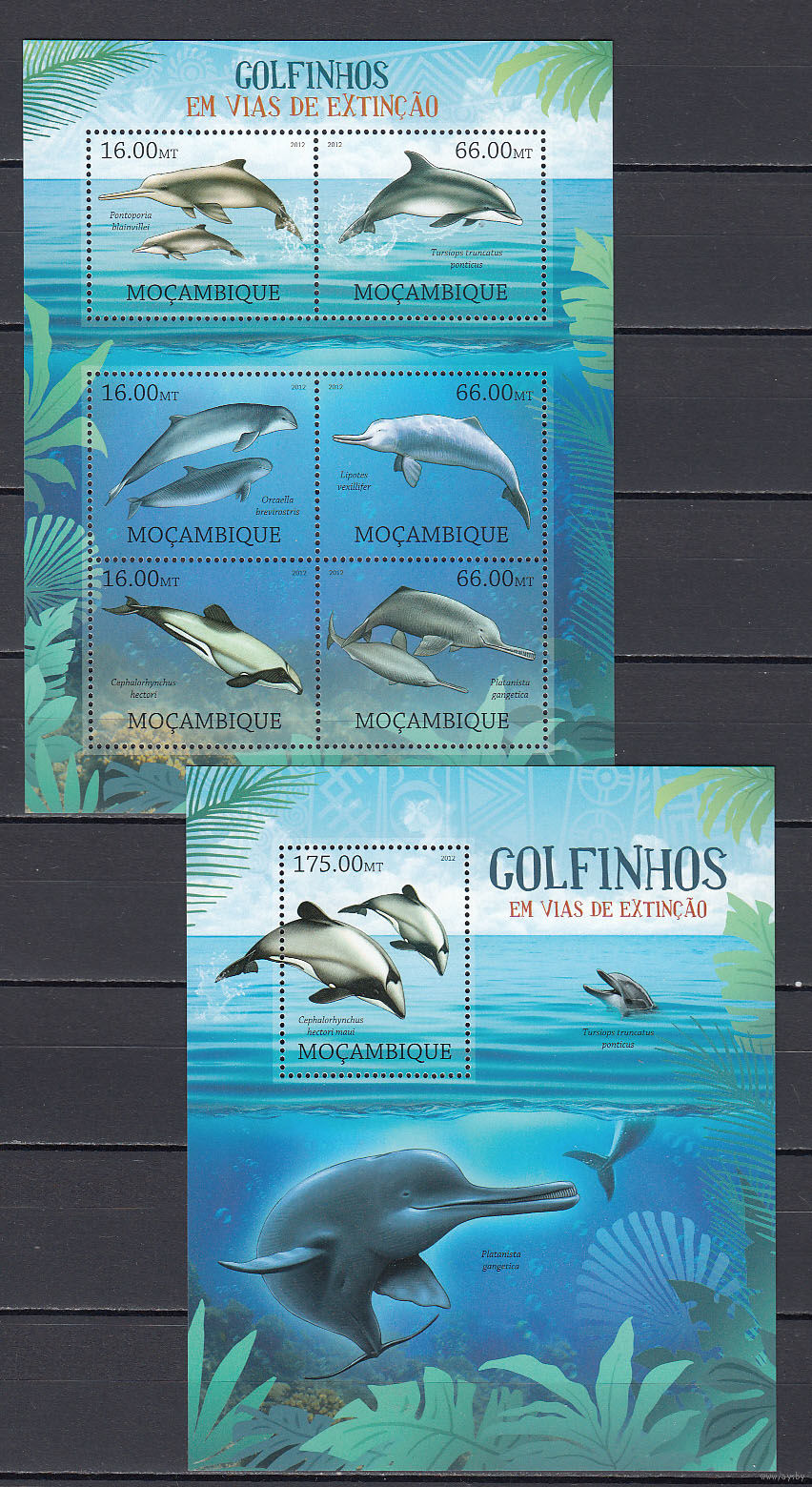 Фауна. Дельфины. Мозамбик. 2012. 1 малый лист и 1 блок. Michel N 5817-5722, бл638 (24,0 е)