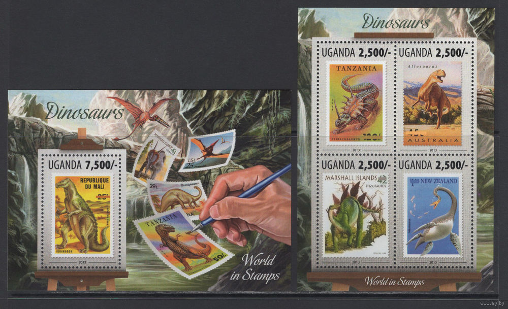 Фауна Динозавры Уганда 2013** Марки на Марках #3131-3134+BL.439