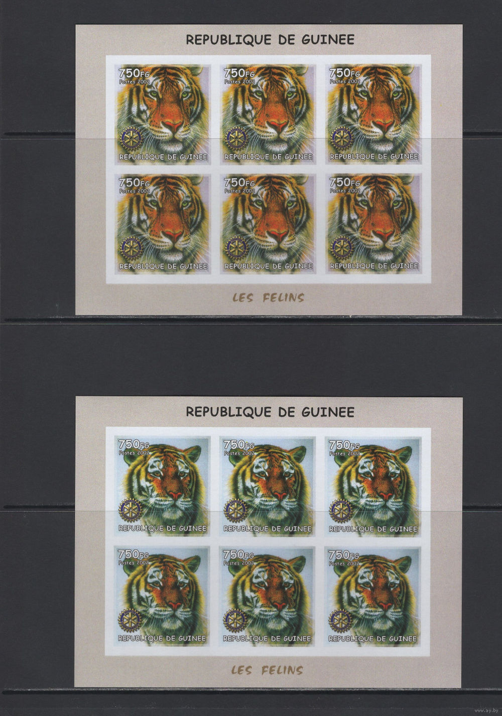 Фауна Кошки Гвинея 2002** Хищные кошки Тигры Малые листы 2 шт Без перфорации