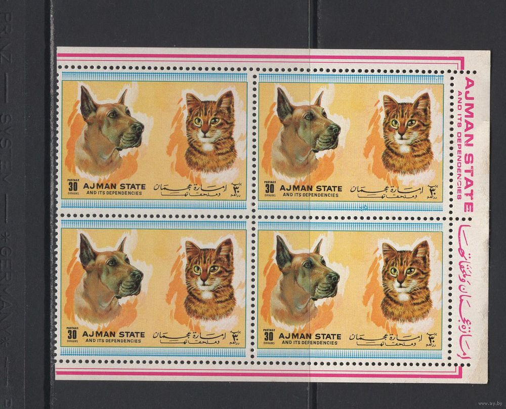 Фауна Кошки Собаки Аджман /Ajman 1972** Дог и короткошерстная полосатая кошка Квартблок
