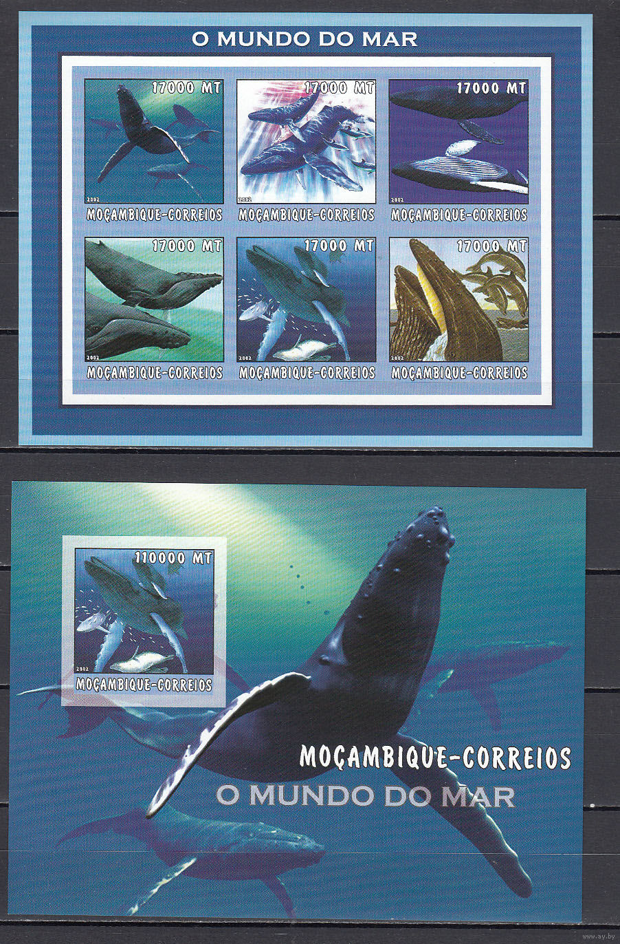 Фауна. Мир моря. Киты. Мозамбик. 2002. 1 малый лист и 1 блок б/з. Michel N 2566-2721, бл168-192 (26,0 е)