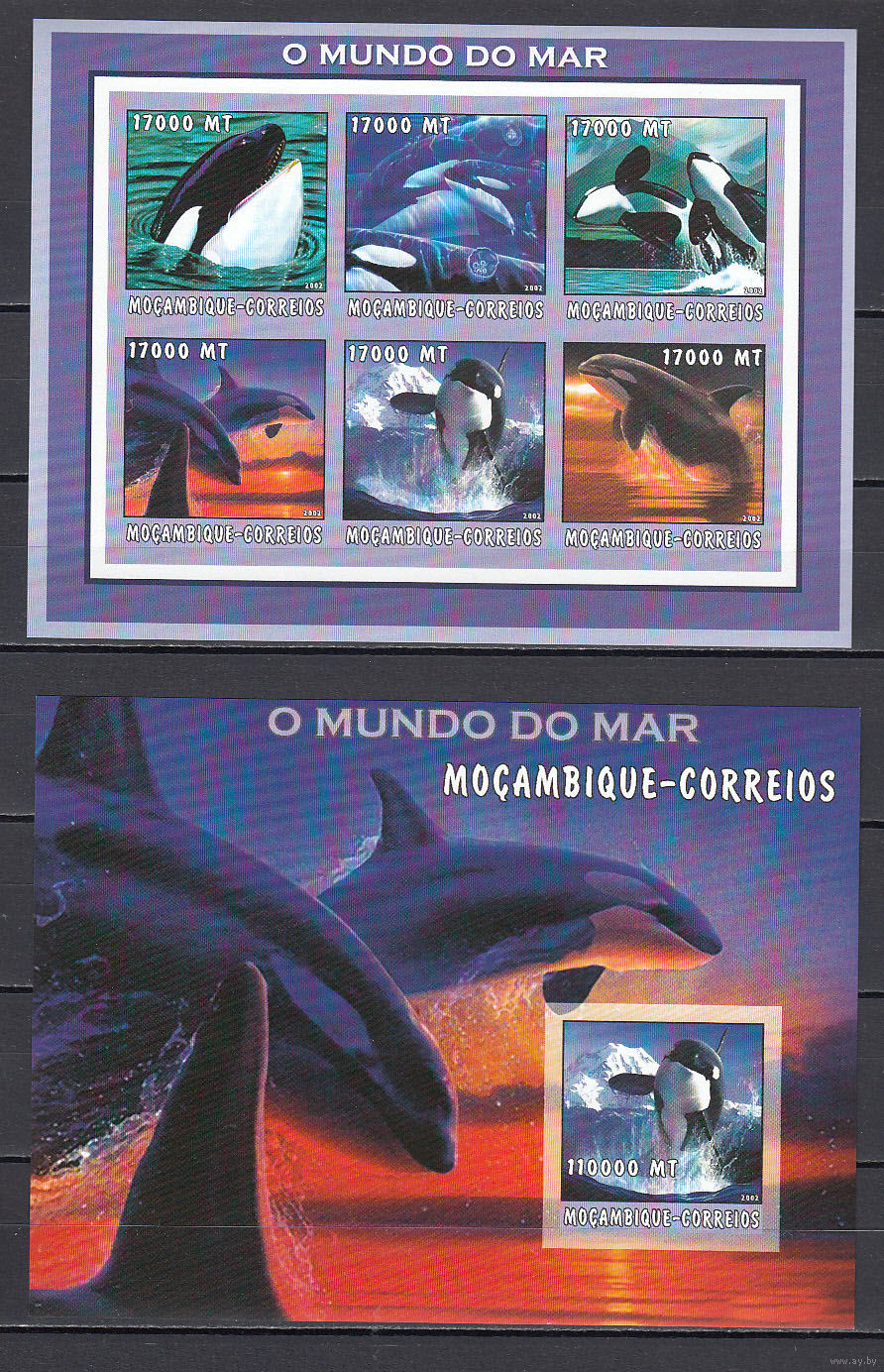 Фауна. Мир моря. Киты. Мозамбик. 2002. 1 малый лист и 1 блок б/з. Michel N 2566-2721, бл168-192 (26,0 е)