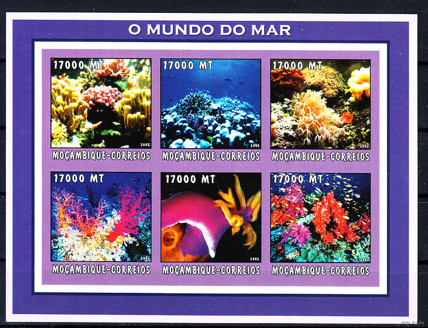 Фауна. Мир моря. Кораллы. Мозамбик. 2002. 1 малый лист б/з. Michel N 2566-2721 (12,0 е)
