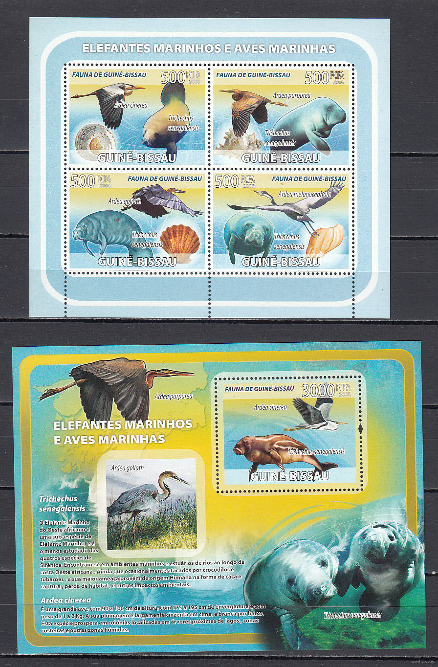 Фауна. Морские животные и птицы. Гвинея-Бисау. 2008. 1 малый лист и 1 блок. Michel N 3792-3795, бл645 (20,0 е)
