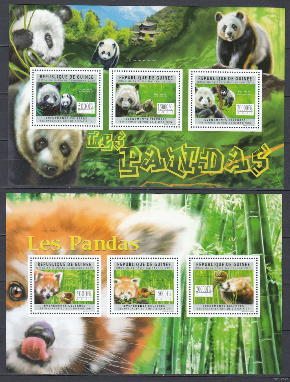 Фауна. Панды. Гвинея. 2011. 2 малых листа. Michel N 8897-8902 (32,0 е)
