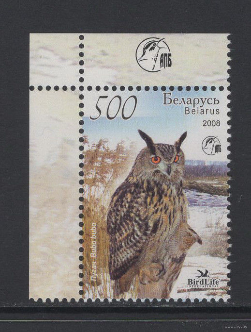 Фауна птицы Беларусь 2008 коллекционная марка "Филин"
