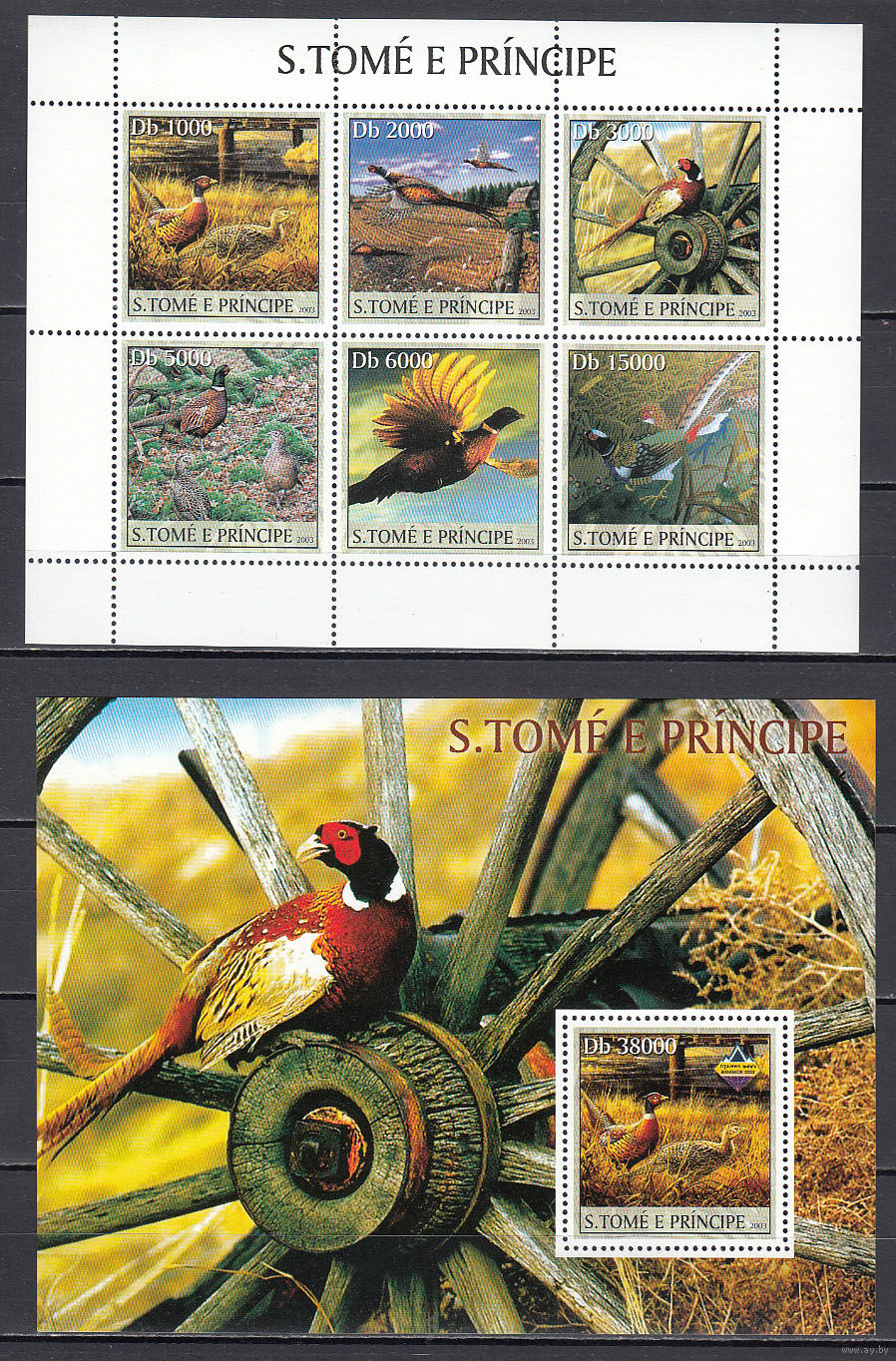 Фауна. Птицы. Сан-Томе и Принсипе. 2007. 1 малый лист и 1 блок. Michel N 3004-3043, бл589-598 (23,0 е).