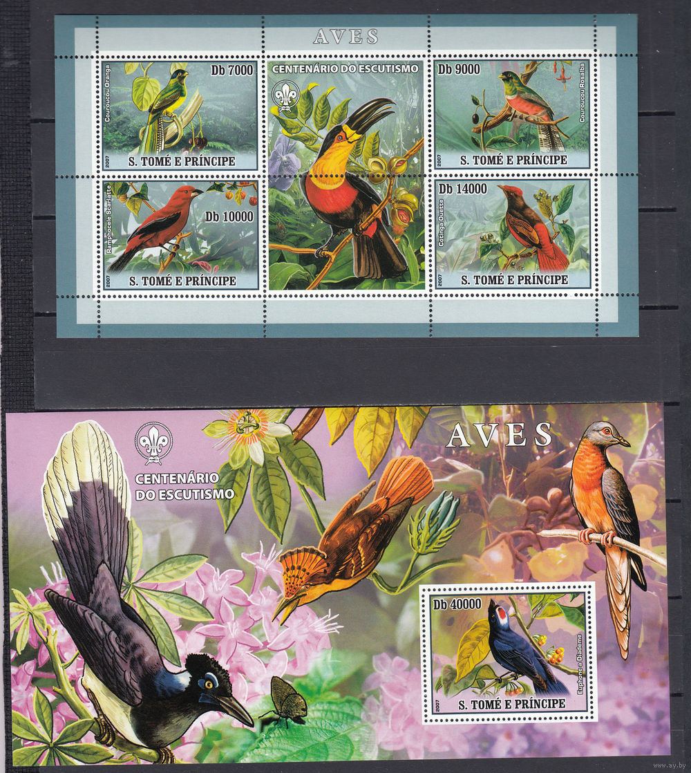 Фауна. Птицы. Сан-Томе и Принсипе. 2007. 1 малый лист и 1 блок. Michel N 3032-3035, бл596 (23,0 е)