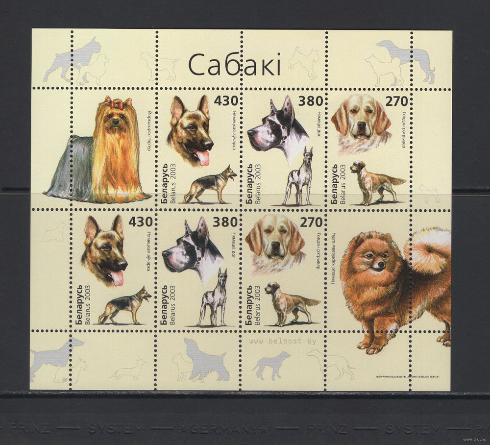 Фауна собаки Беларусь 2003 Малый лист коллекционных марок "Собаки"