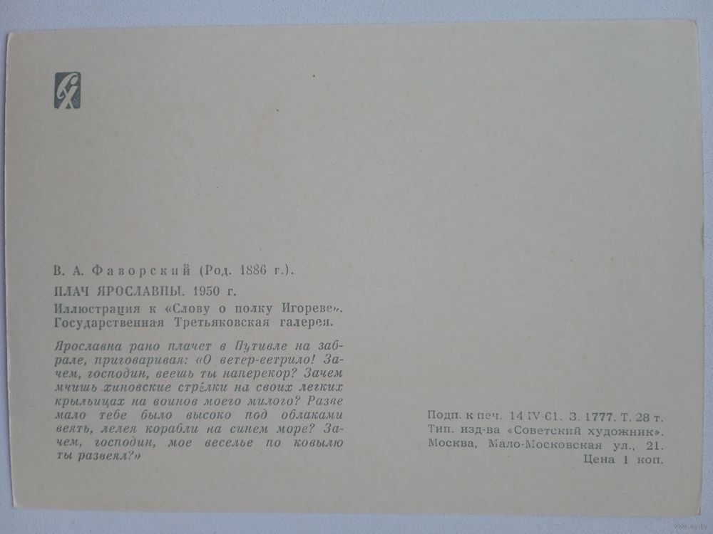 Фаворский. Плач Ярославны