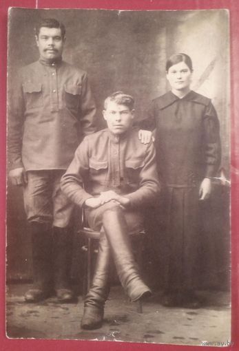 Федор Иванович Самохвалов, его сестра Софья и его товарищ. Саратовская губерния. Фото до 1917 г. 9х13 см.