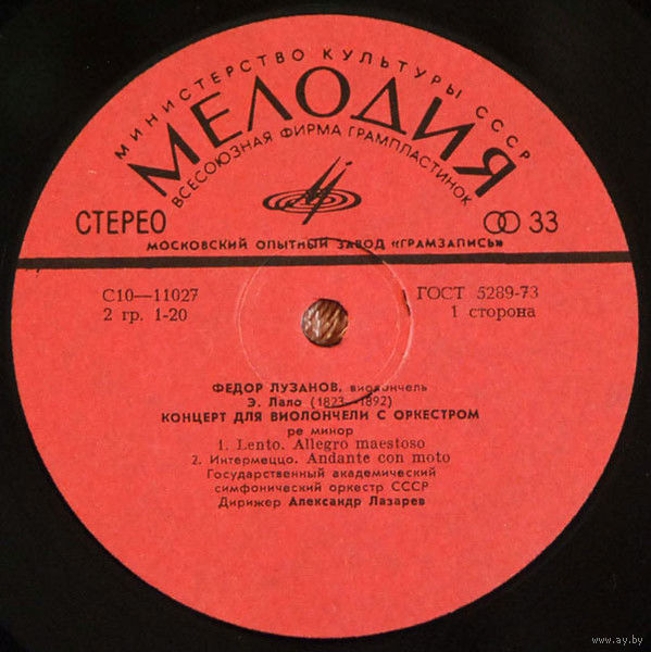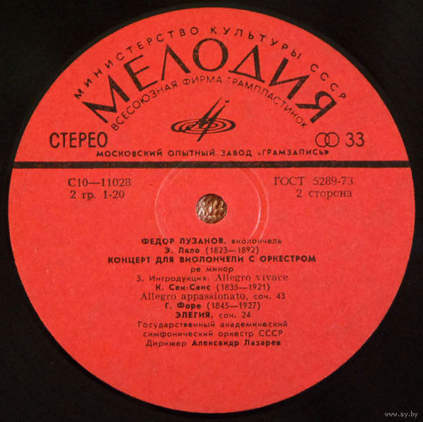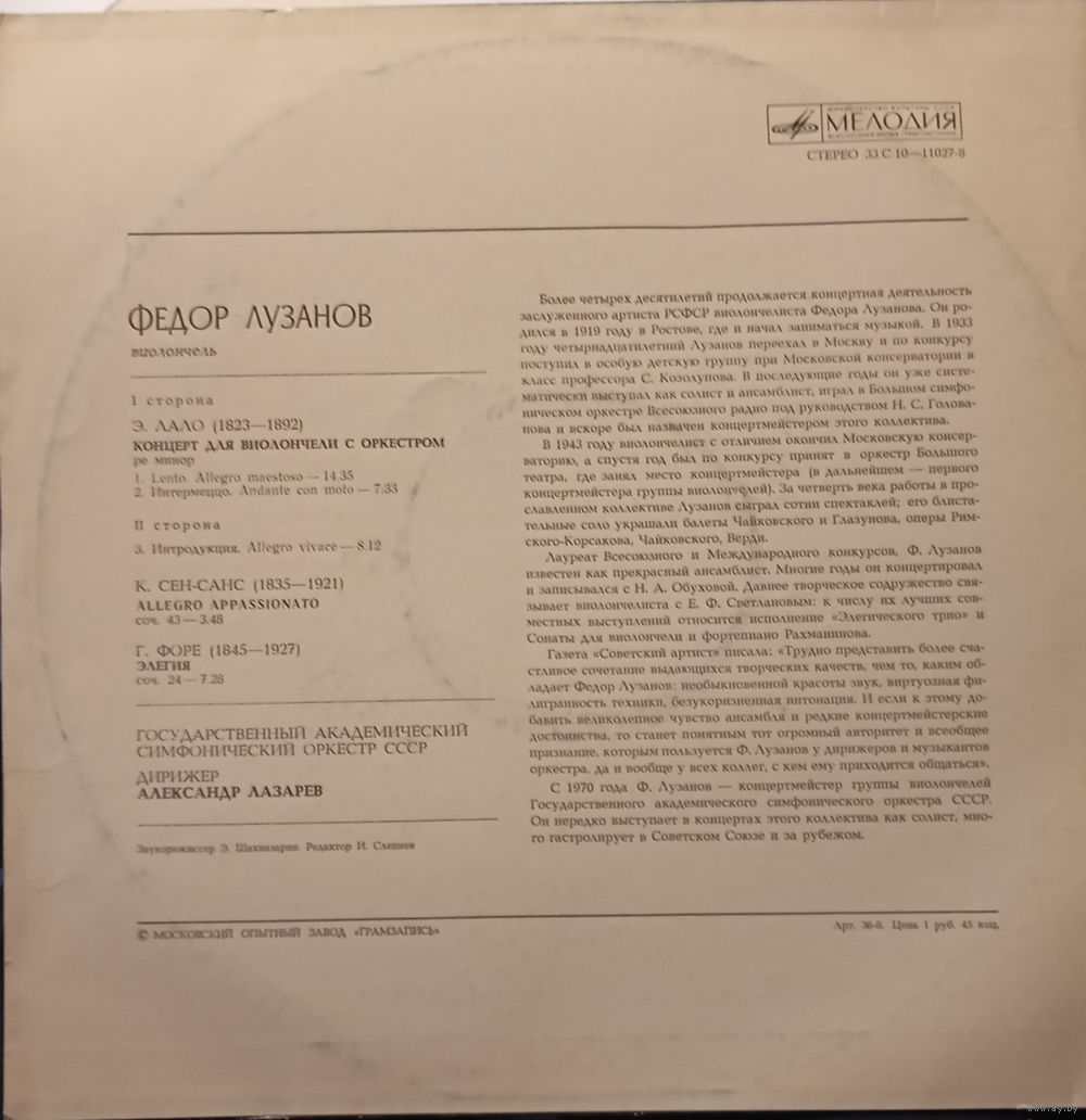 Федор Лузанов - Э. Лало / К. Сен-Санс / Г. Форе – Концерт Для Виолончели С Оркестром / Allegro Appassionato / Элегия - 1978,Vinyl,LP,made in USSR.