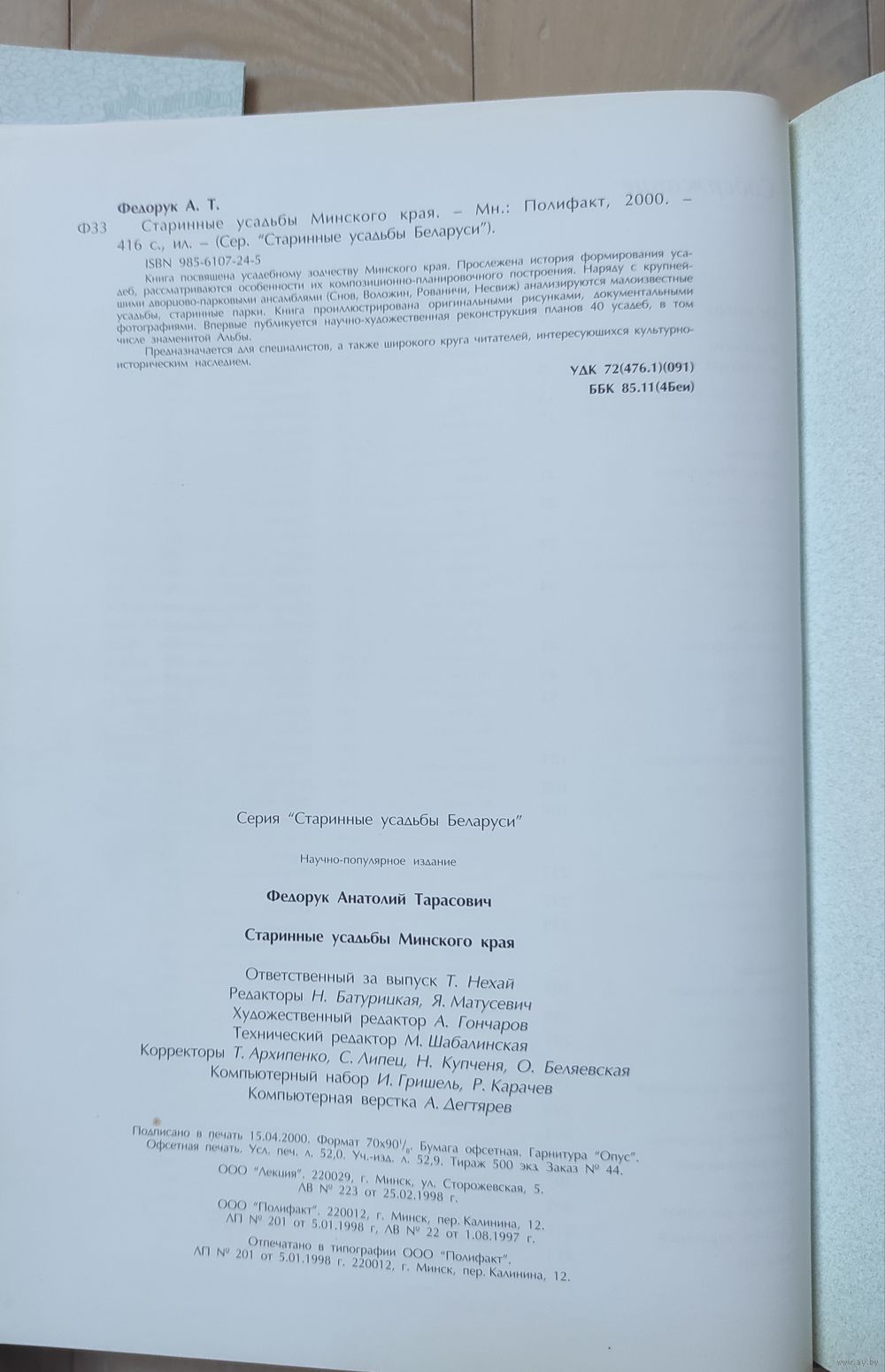 Федорук А.Т. "Старинные усадьбы Минского края"