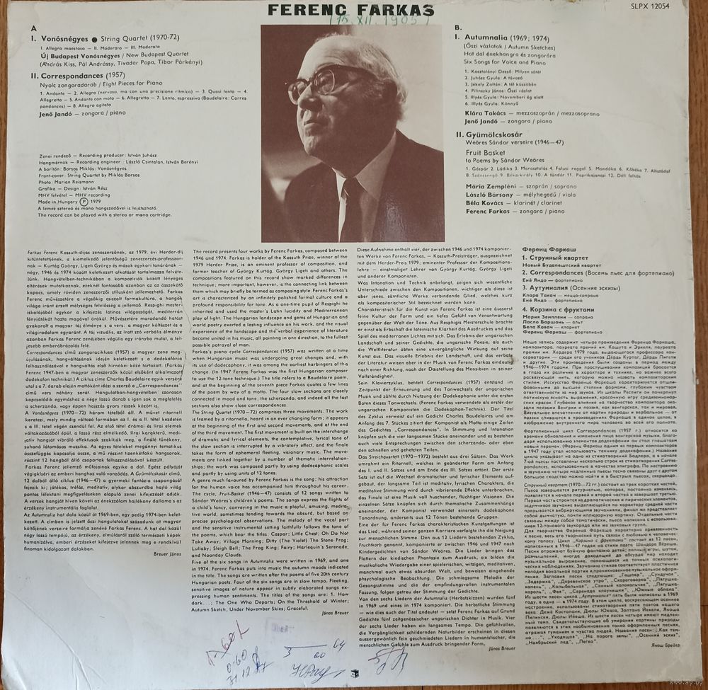 Ferenc Farkes – String Quartet ⋅ Correspondence ⋅ Autumnalia ⋅ Fruit-Basket