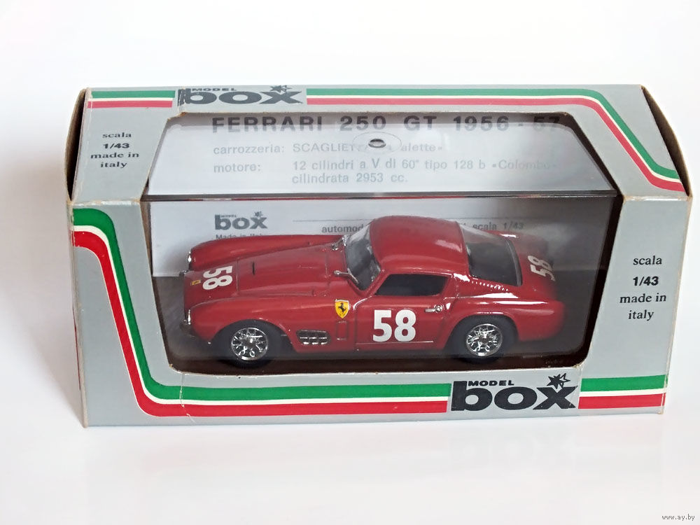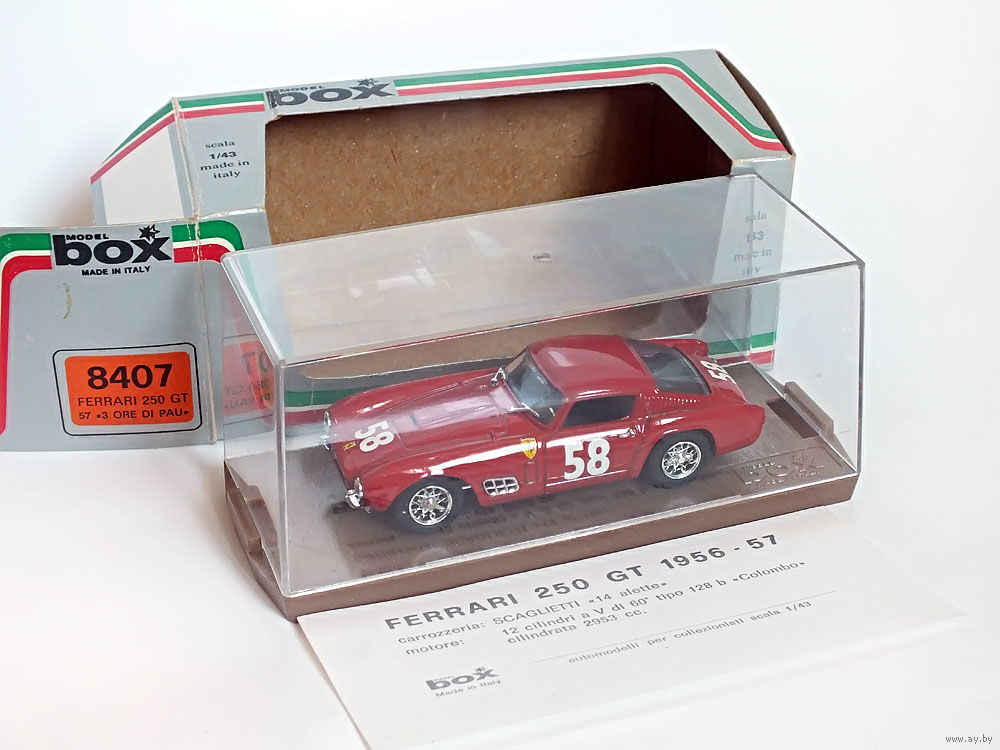 Масштабная модель автомобиля Ferrari 250 GT "3 Ore Di Pau" (1957) #58 Jean Guichet. Масштаб 1:43. Производство "BOX Model".