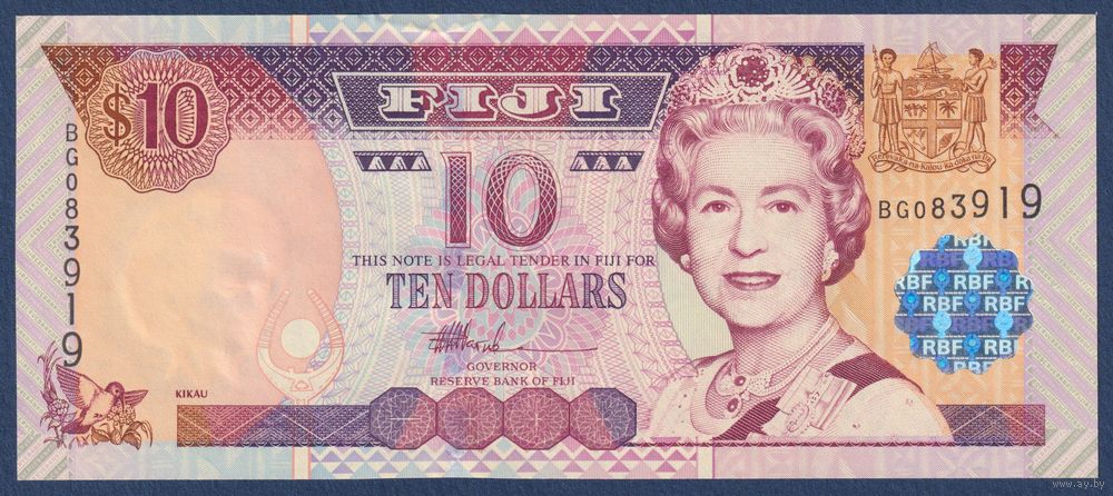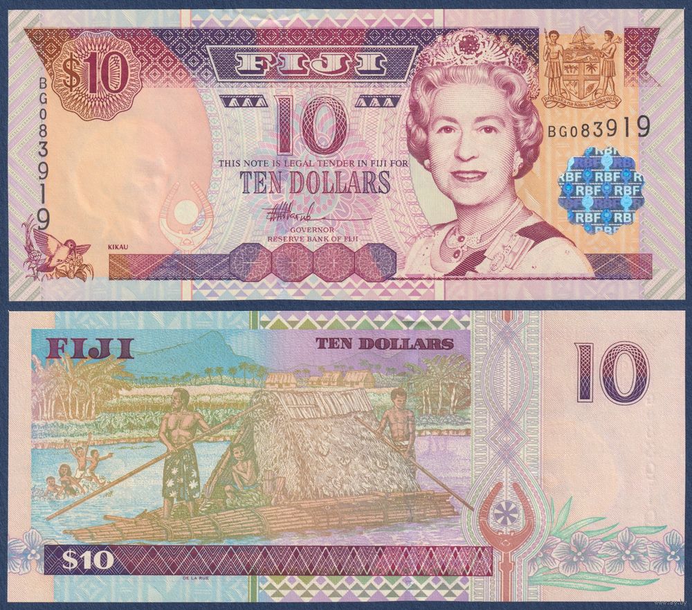 Фиджи, 10 долларов 2002 г, P-106 (BG, королева Елизавета II), UNC