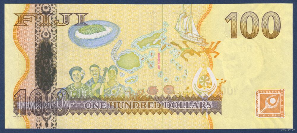 Фиджи, 100 долларов 2007 г., P-114 (CC, королева Елизавета II, карта Фиджи), UNC