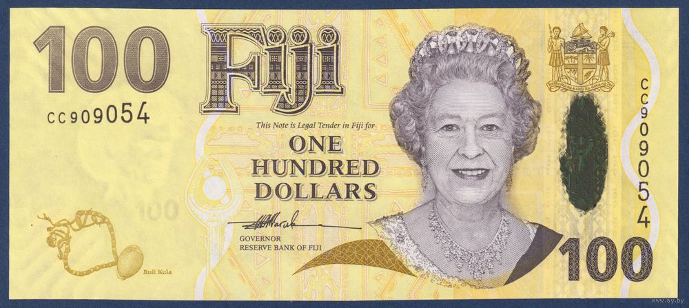 Фиджи, 100 долларов 2007 г., P-114 (CC, королева Елизавета II, карта Фиджи), UNC