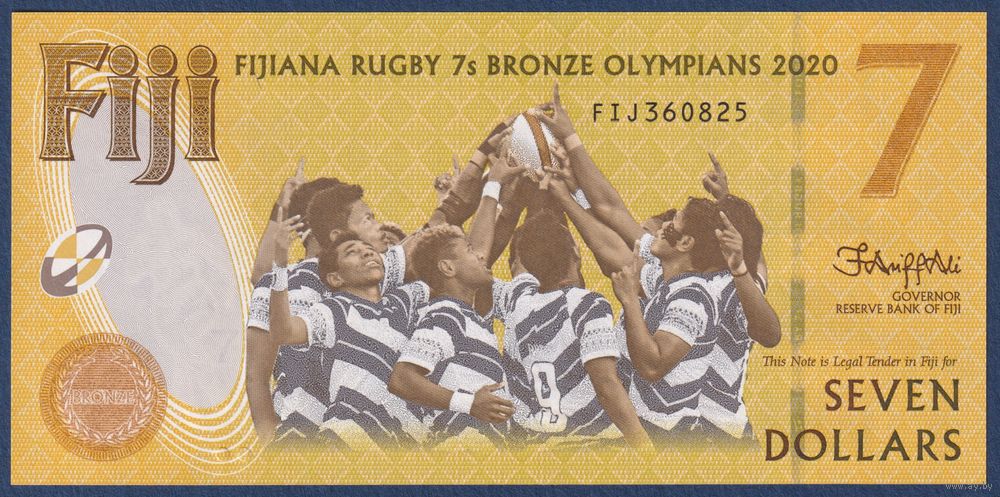 Фиджи, 7 долларов 2022 г., P-W122(2) (FIJ, памятная - сборная Фиджи по рэгби, Олимпийские игры в Токио), UNC
