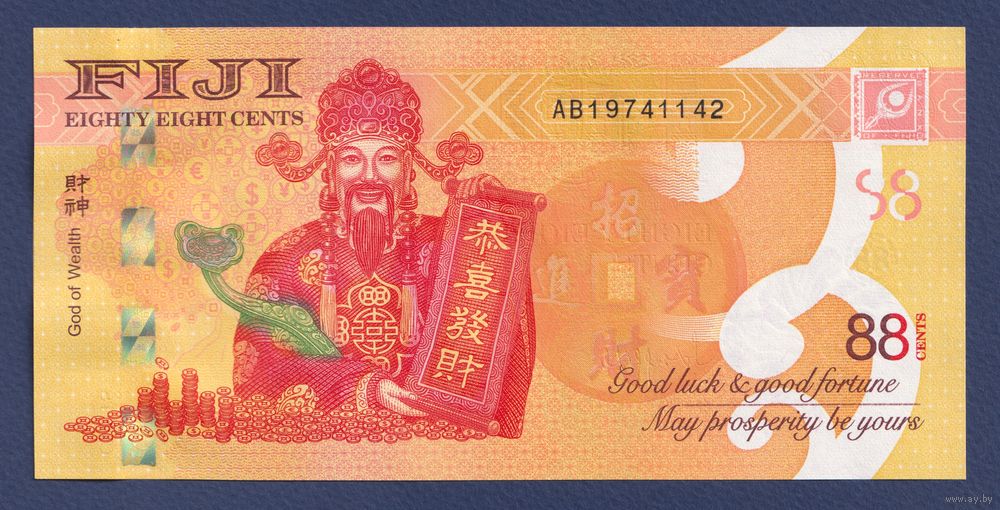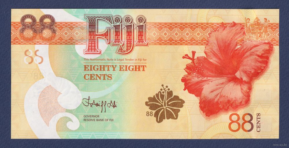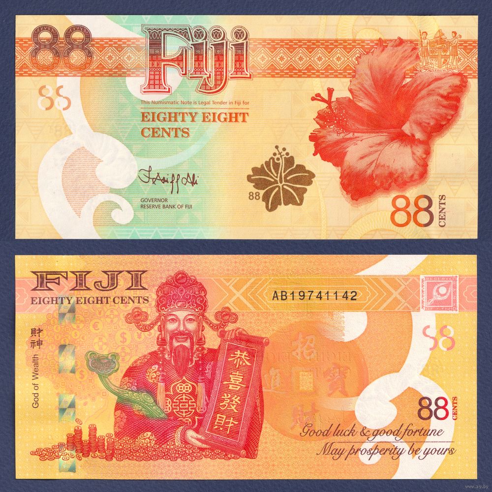 Фиджи, 88 центов 2022 г., P-W123(1) (AB, памятная, цветок гибискуса, бог богатства), UNC