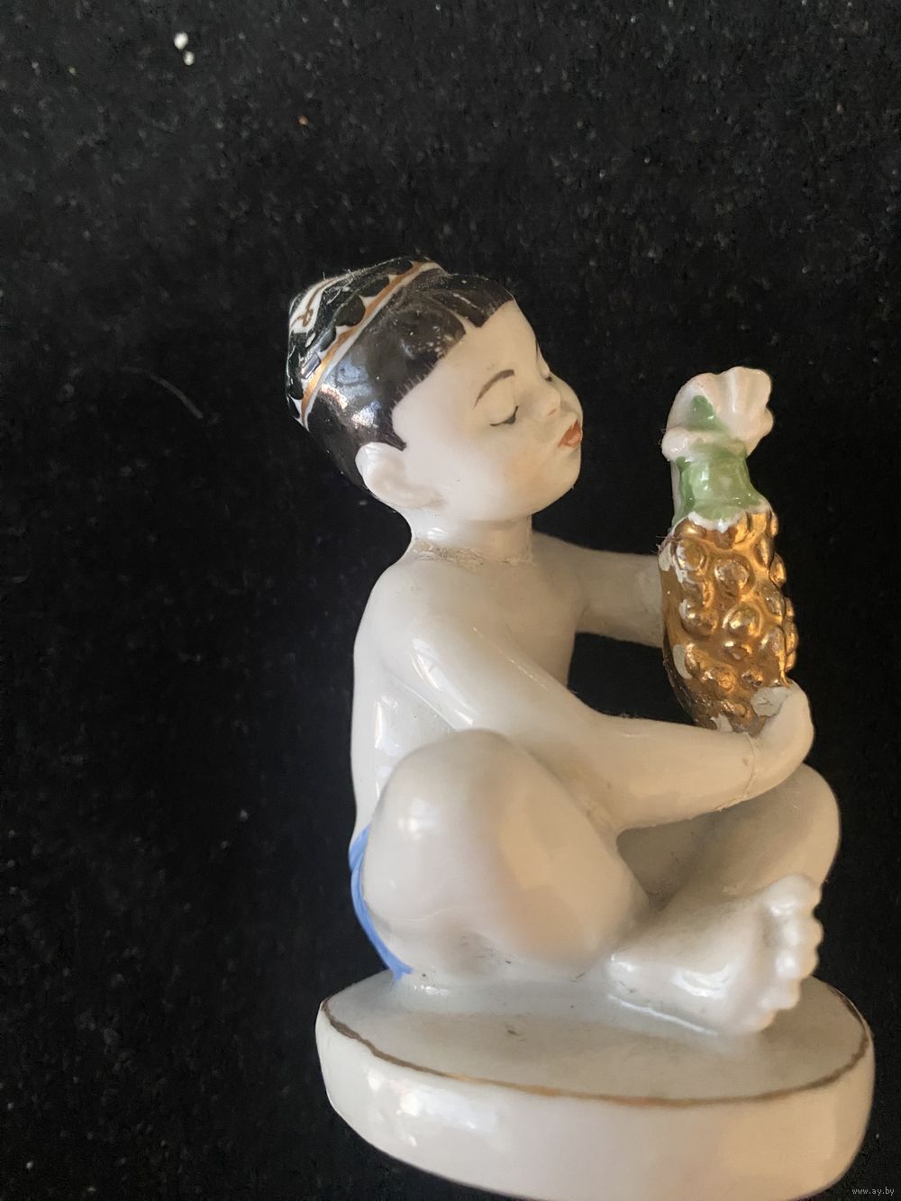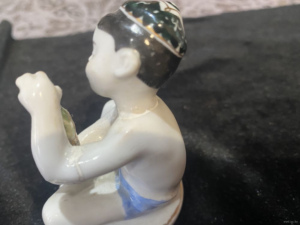 Фигурка ЛФЗ фарфор.узбек с виноградом,склейка рук и головы ,высота-7,5