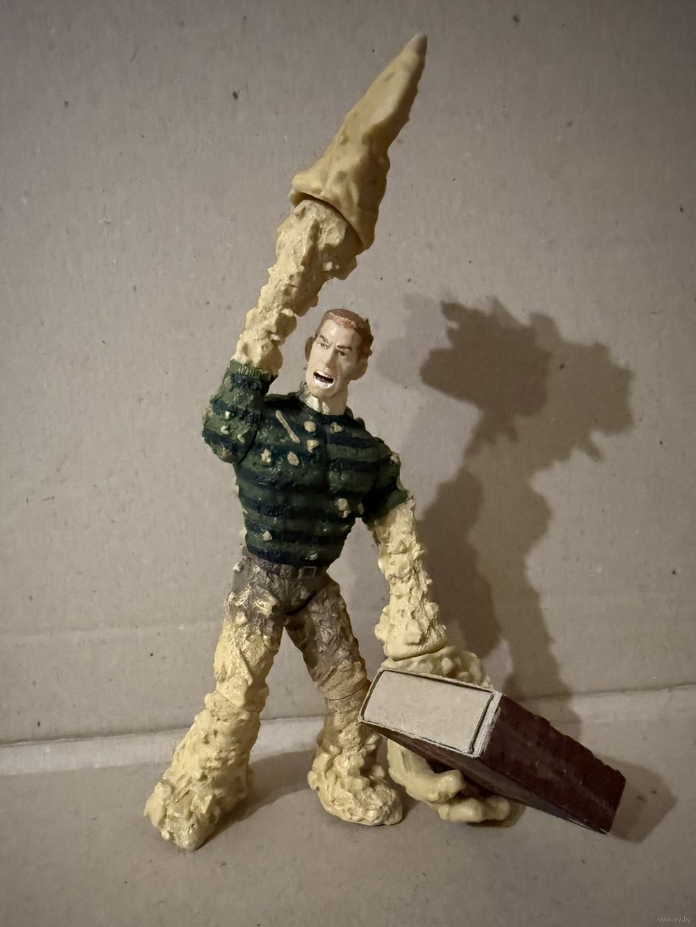 Представленная фигурка — это Песочный Человек (Sandman), персонаж Marvel Comics, выпускавшийся компанией Hasbro в 2006 или 2007 году в рамках серии по фильму «Человек-паук 3». Эта фигурка относится к категории коллекционных экшн-фигурок.