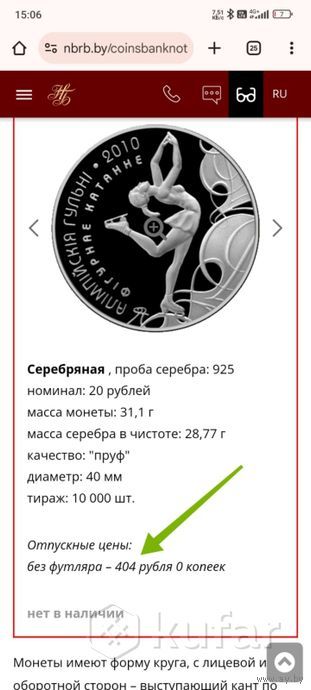Цена на сайте национального банка 404р, я же уступлю за 320р.