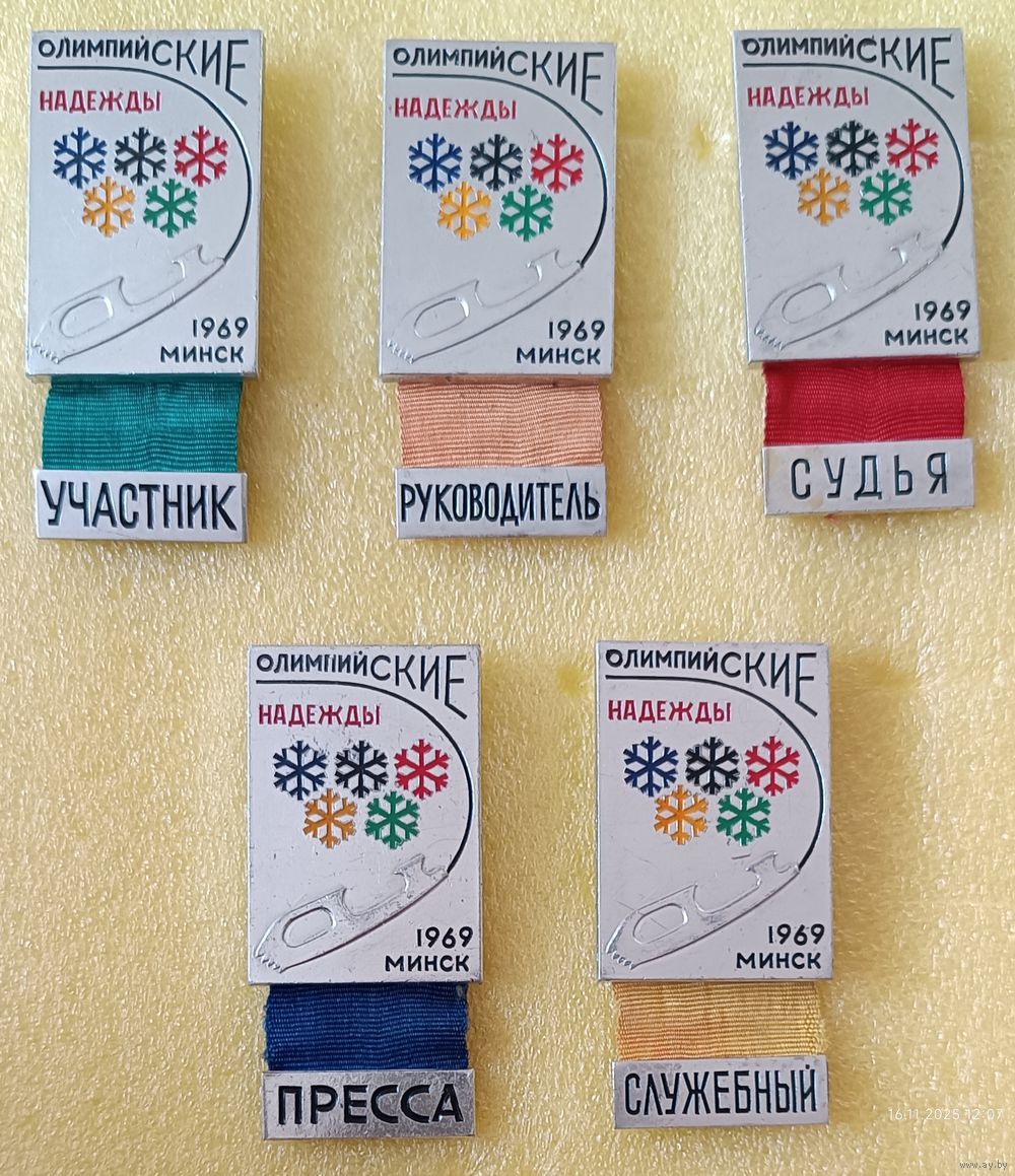 Фигурное катание Олимпийские надежды 1969 Минск (5 служебных значков)