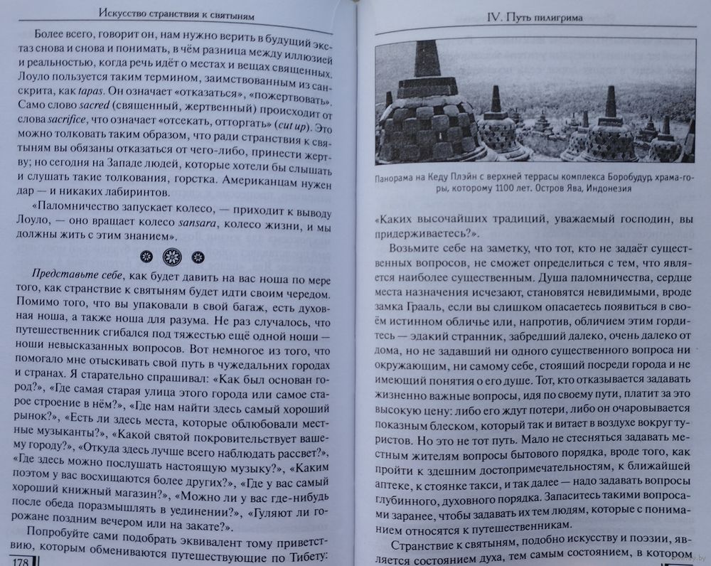 Большой формат. Тираж 3000 экз. 320 стр. Эта книга будет интересна тем, кто уже совершал путешествия по внешнему и внутреннему мирам, а также тем, кто таких путешествий еще не совершал. Автор книги прошел разными дорогами духовного странствия и напоминает нам, что смысл одухотворенного путешествия состоит в погружении в тайну собственной сущности; это погружение суть древнейшая форма возвращения к собственным корням и повторного познания самого себя. Именно такое погружение и называют странствием к святыням. Возможно, благодаря этой книге туризм станет способом духовного обогащения.