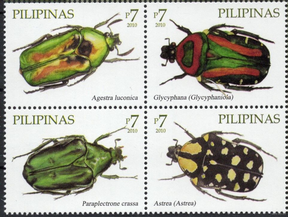 Филиппины 2010. Жуки. 4 марки квартблок