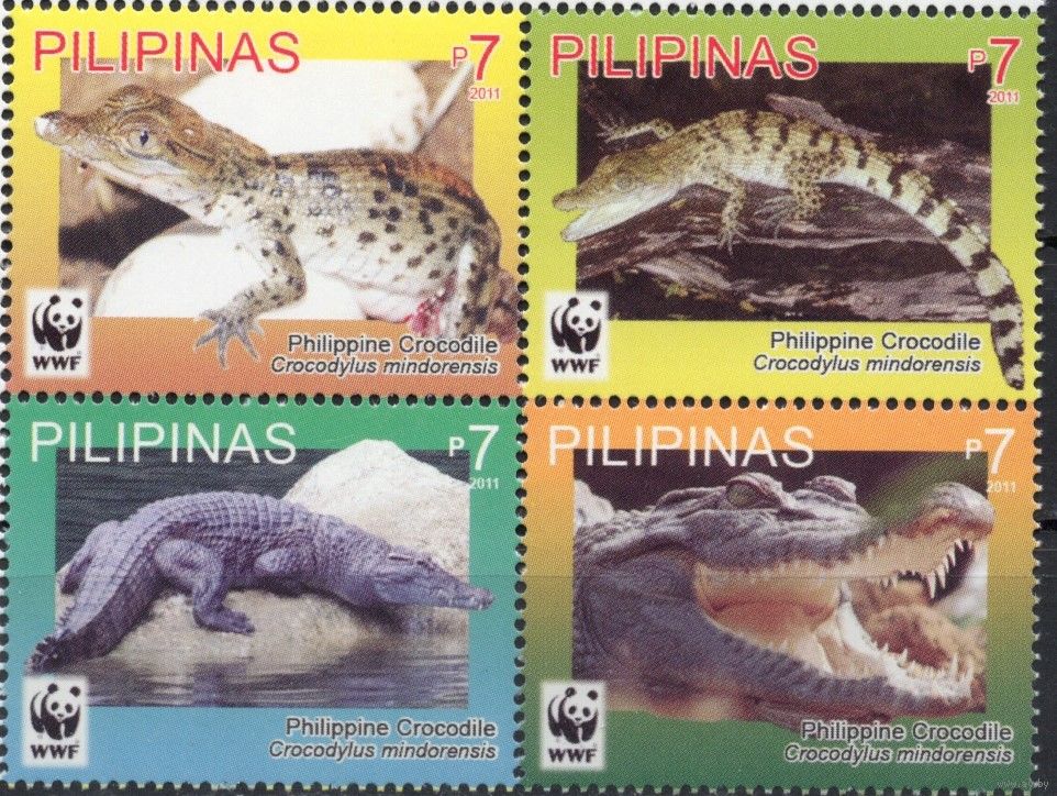 Филиппины 2011. Фауна WWF Крокодилы. 4 марки квартблок (4500)