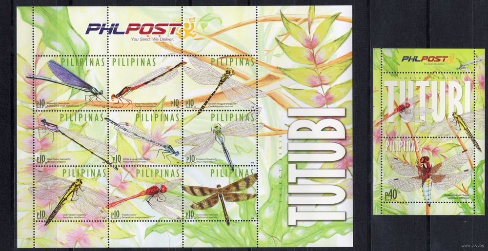 Филиппины 2015.Фауна. Насекомые стрекозы малый лист+блок (4928)