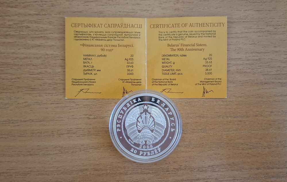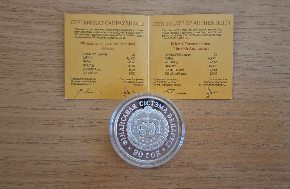 Серебряная монета Национального банка Республики Беларусь "Финансовая система Беларуси. 90 лет"