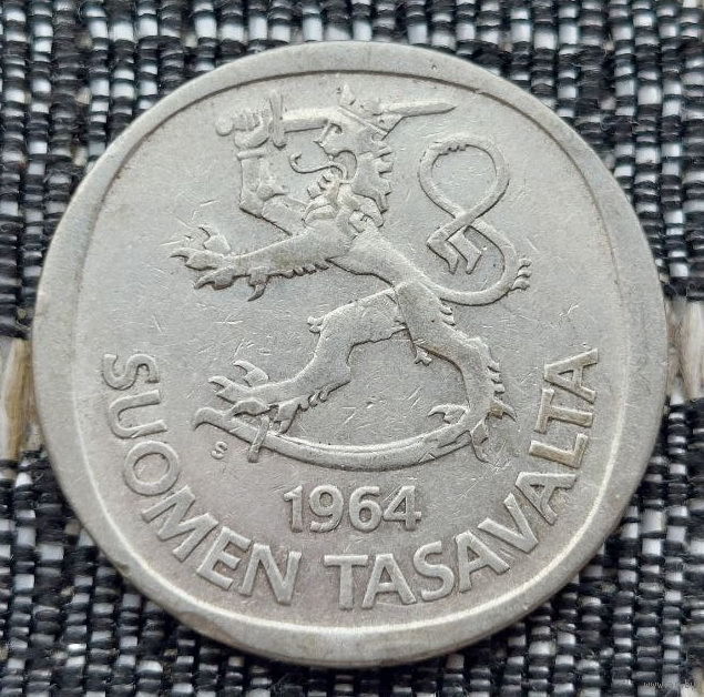 Финляндия 1 марка 1964 года, S, UNC. Серебро! Сторгуй за свою цену, предложи обмен!
