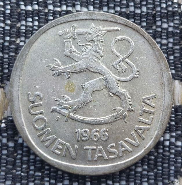 Финляндия 1 марка 1966 года, S, АU. Серебро! Сторгуй за свою цену, предложи обмен!