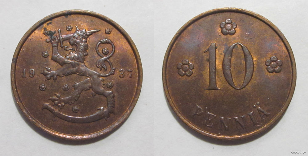 Финляндия - 10 пенни 1937 aUNC