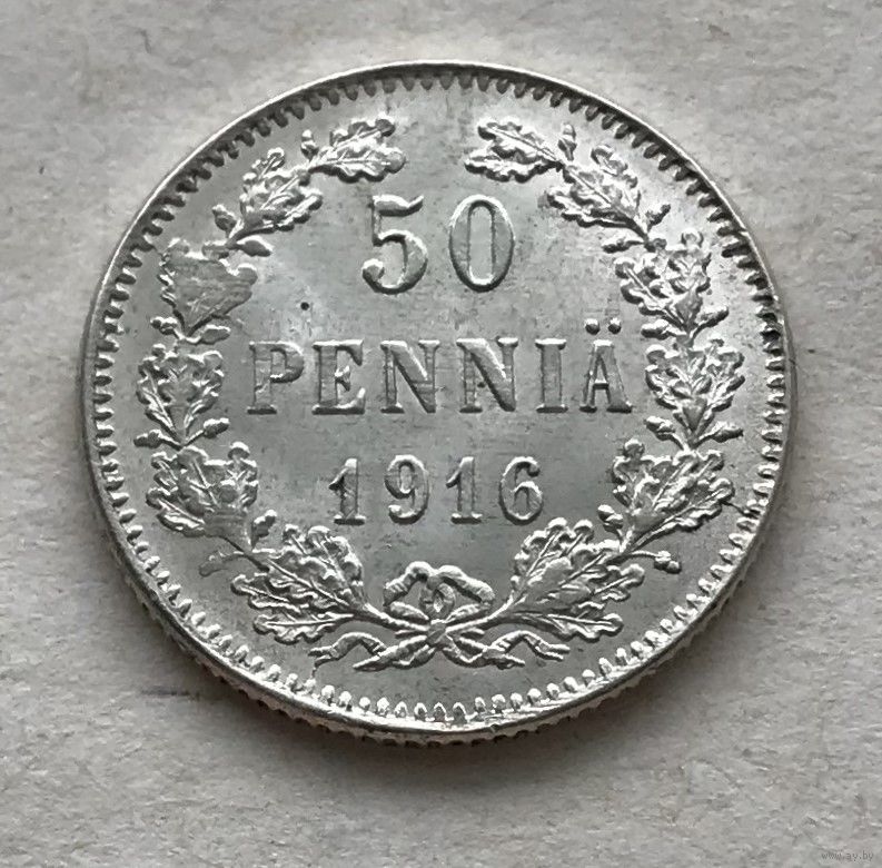Финляндия 50 пенни 1916 - серебро 0,750 в блеске!