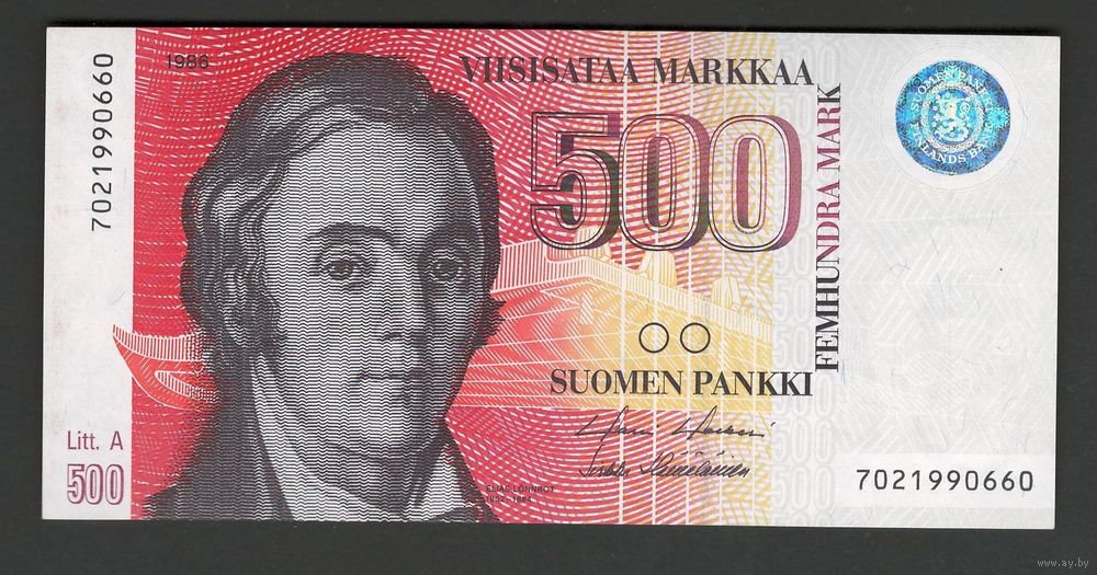Финляндия 500 марок 1986 года. Litt. A. Тип Р-120. Состояние UNC
