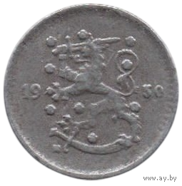 Финляндская Республика (Финляндия). 1 марка 1950 Н. Брак. Раскол штемпеля (соединены буквы А и R).