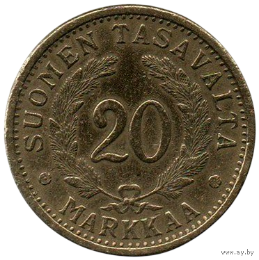 Финляндская Республика. Финляндия. 20 марок 1935 S. 31 мм. Нечастая (тираж 250000)