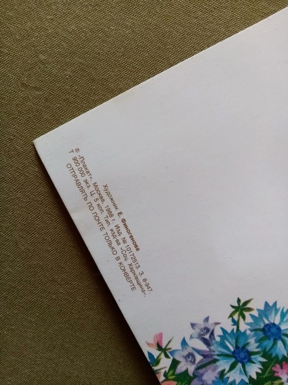 Финогенова 1988 Поздравляем! двойная, красиво подписана, не сложена 14,5 х 14 см