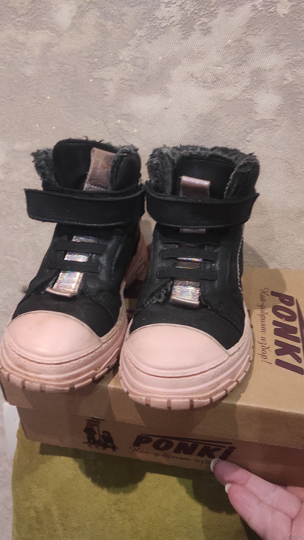 Фирменные ботинки Ponki на 28-29 размер, натуральная кожа, стелька не достается, точно длину не скажу. Покупала за границей. Очень красивые, осень или еврозима, ну действительно очень удобные. Носим эту обувь, очень удобная. Состояние хорошее. Цена еще лучше).
